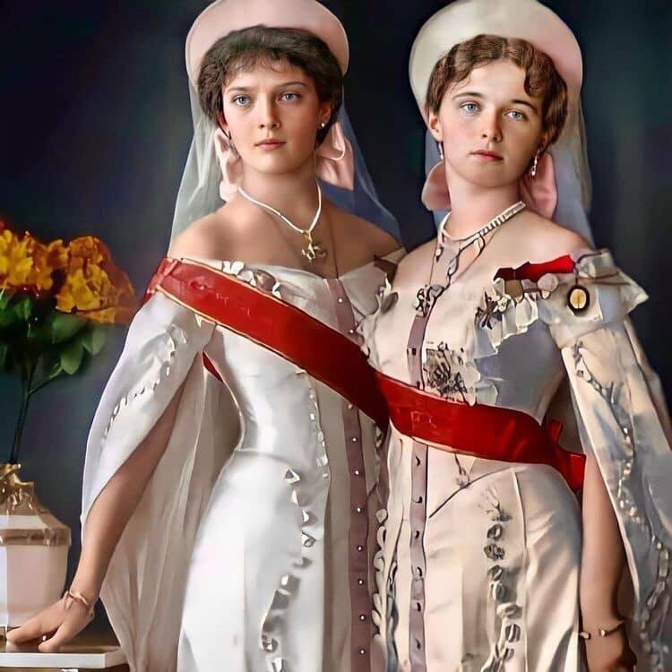 Великие княжны Татьяна и Ольга Николаевна Романовы 1915г.